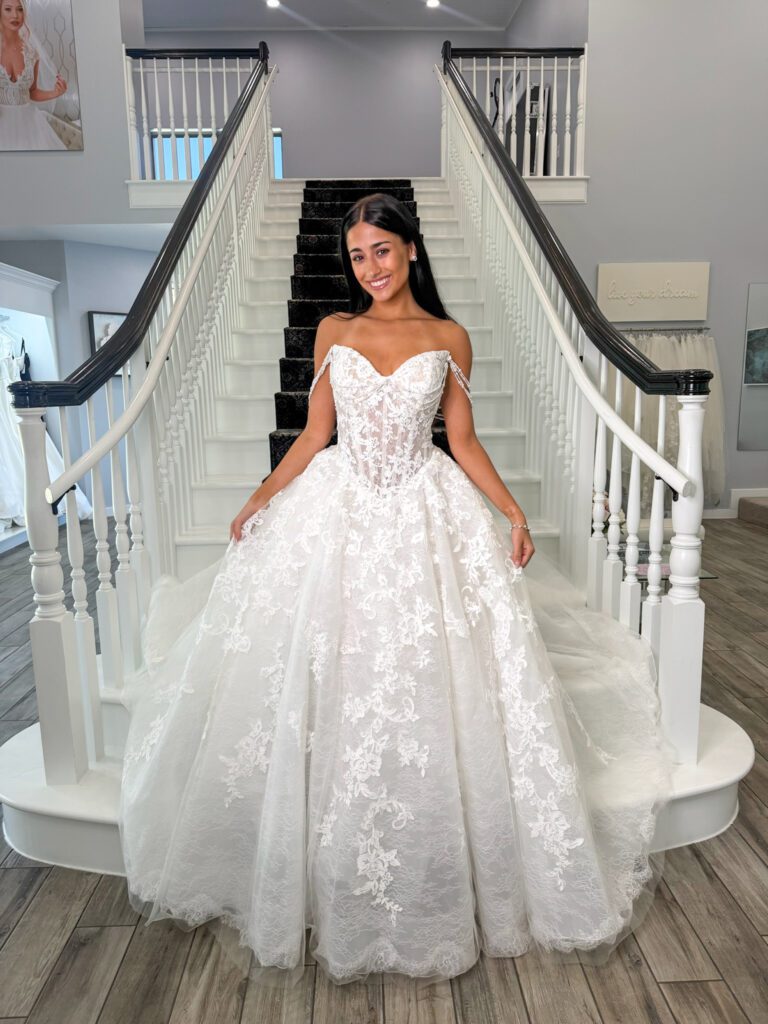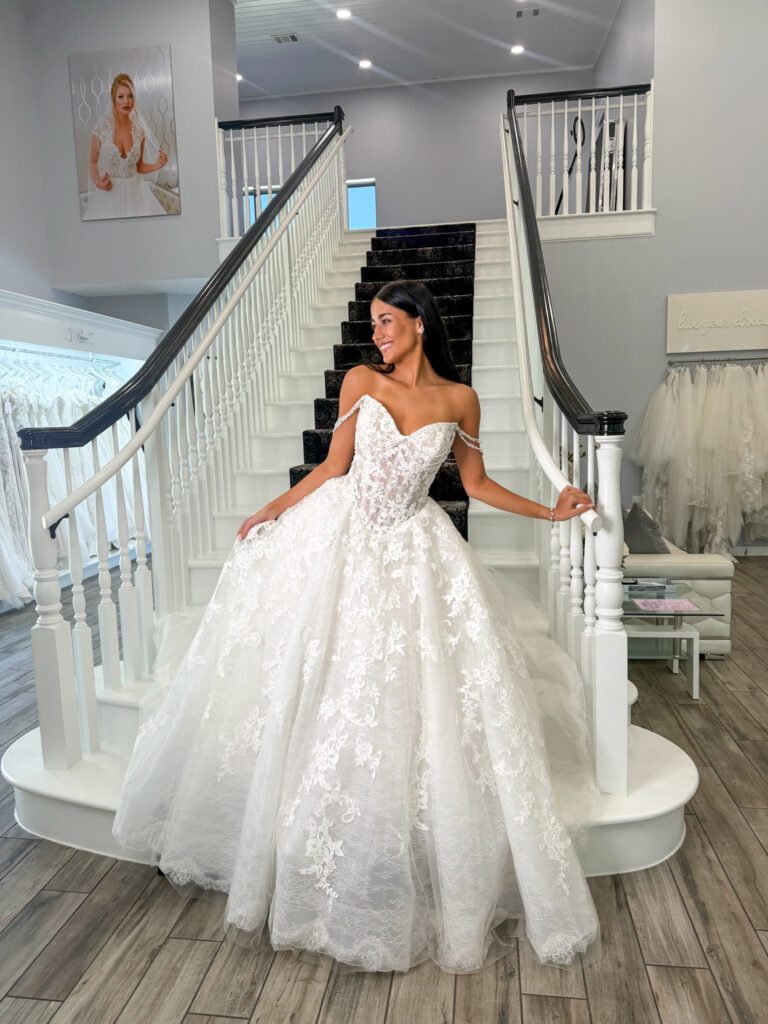 Our Blue by Enzoani collection currently ranges $2,500-$3,900.