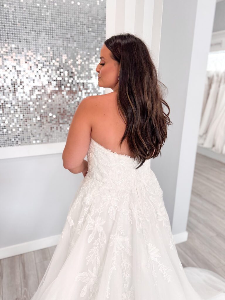 The styles featured below reflect our most up-to-date inventory on hand. We are constantly expanding our selection to provide you with the most beautiful gowns for your big day. Please feel free to contact us directly for questions about sizing.